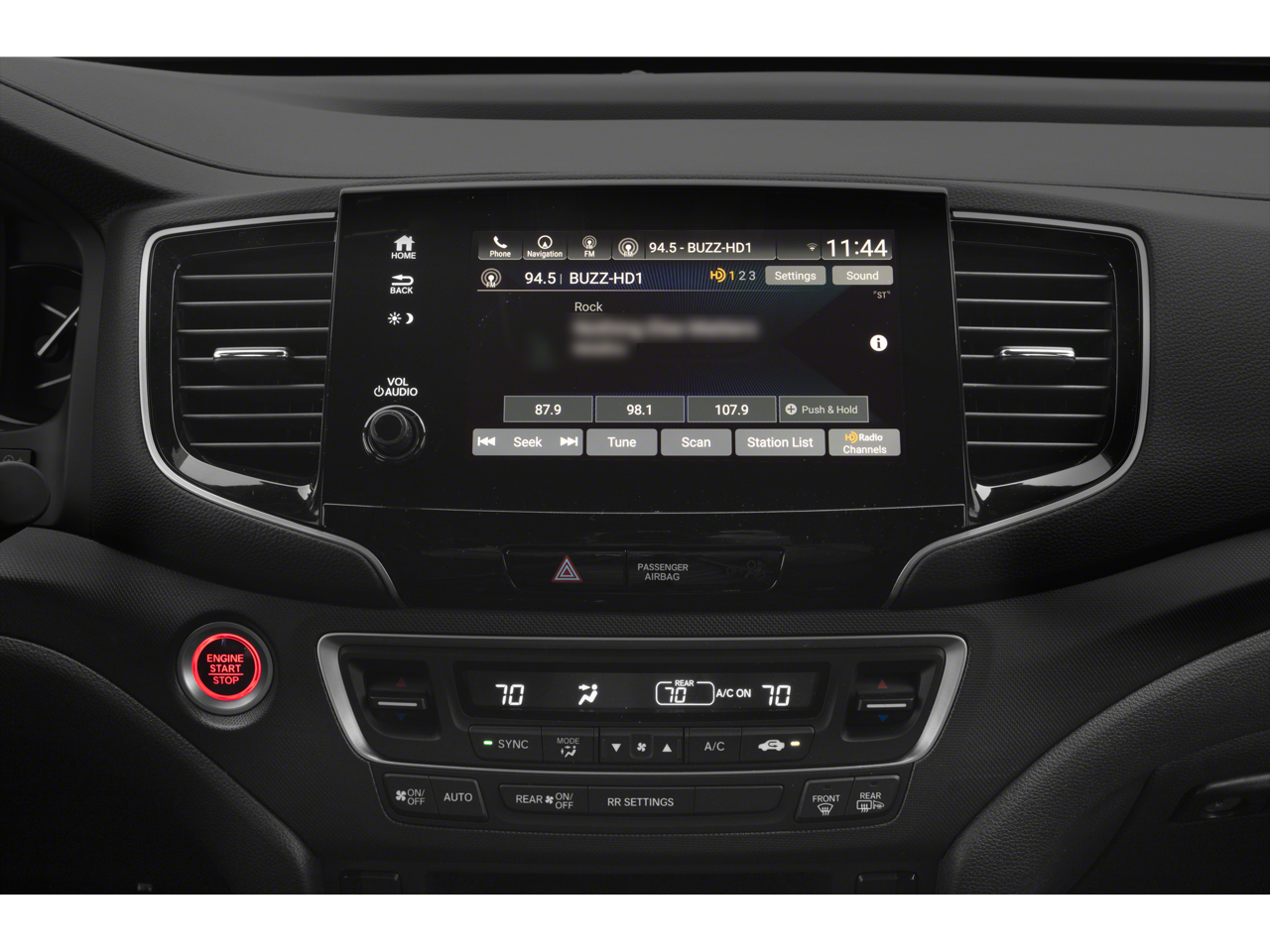 - Radio: 215-Watt Audio System w/7 Speakers -inc: subwoofer, 8" display audio w/high-resolution electrostatic touch-screen and customizable feature settings, Bluetooth® HandsFreeLink, Bluetooth® streaming audio, MP3/auxiliary input jack in center console, Radio Data System (RDS), Speed-Sensitive Volume Compensation (SVC), (3) 2.5-amp USB charging ports, HondaLink, Apple CarPlay integration, Android Auto integration, CabinControl remote compatibility, SMS text message function, SiriusXM, HD Radio, Wireless Phone Charger, 2.5-amp USB smartphone/audio interface port in front console, Honda Satellite-Linked Navigation System w/voice recognition and Honda HD digital traffic and 115-volt power outlet SiriusXM services require a subscription after any trial period. Honda HD digital traffic service is only available in the United States, except Alaska. Honda wireless phone charger is compatible with both Qi and Powermat wireless charging standards. Check with your device's manufacturer for wireless capability.